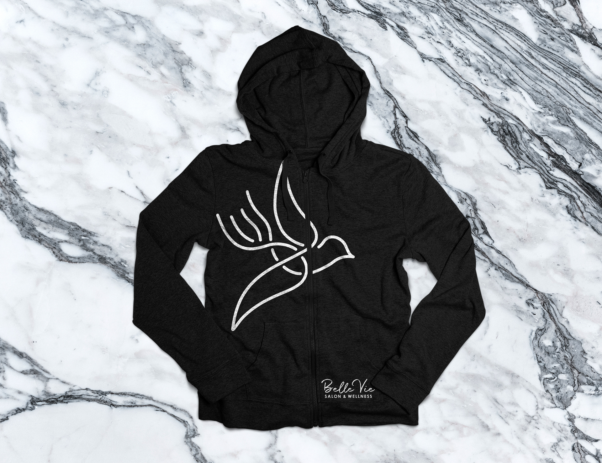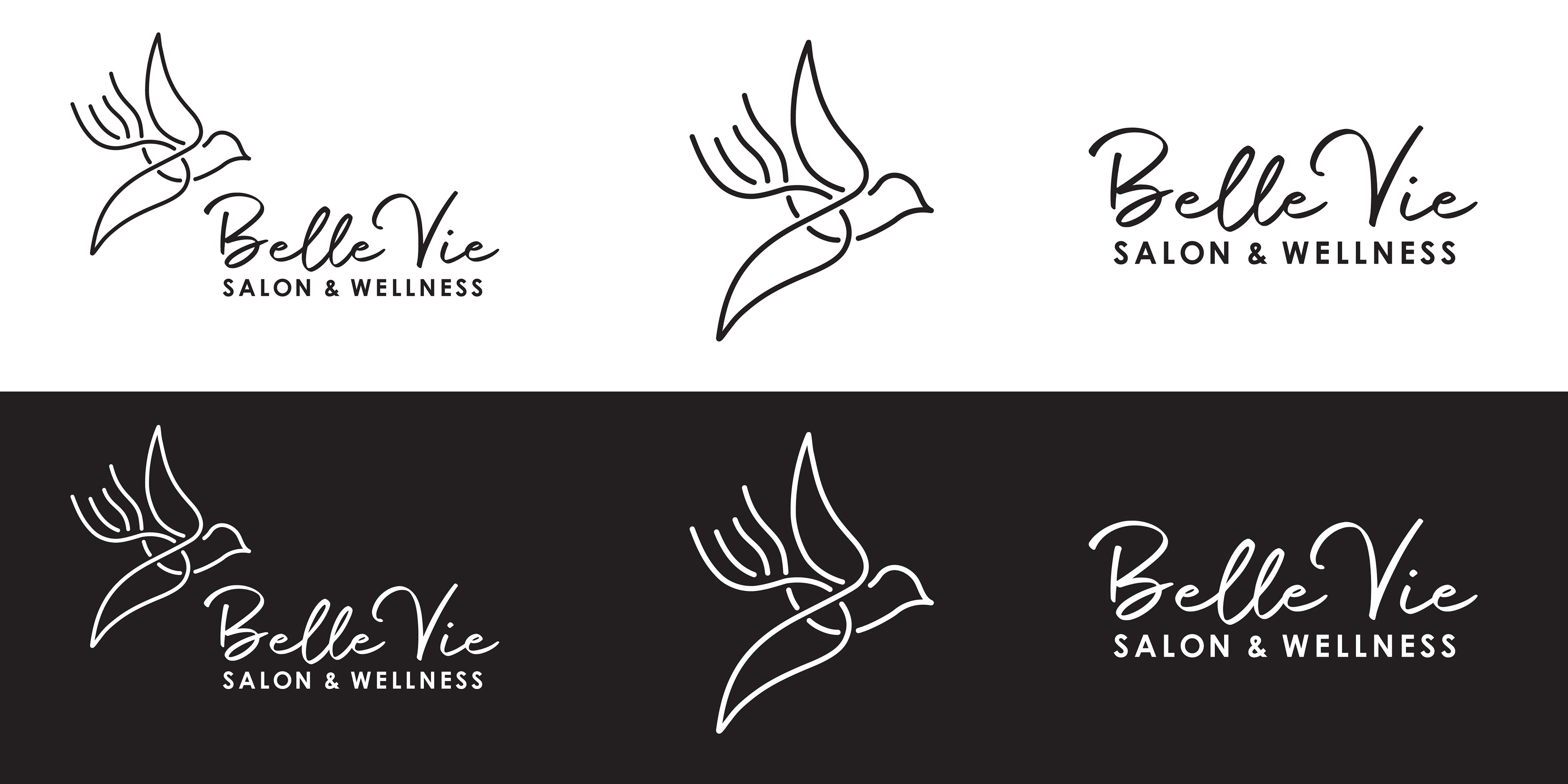 Belle Vie Salon & Spa - This is Belle Vie Salon & Spa's updated identity for 2021. She wanted to keep the bird in the logo but to contemporize it into a line art illustration. She also wanted to use a calligraphy for this update in order to soften its presence and to give it a more personal character at the same time.