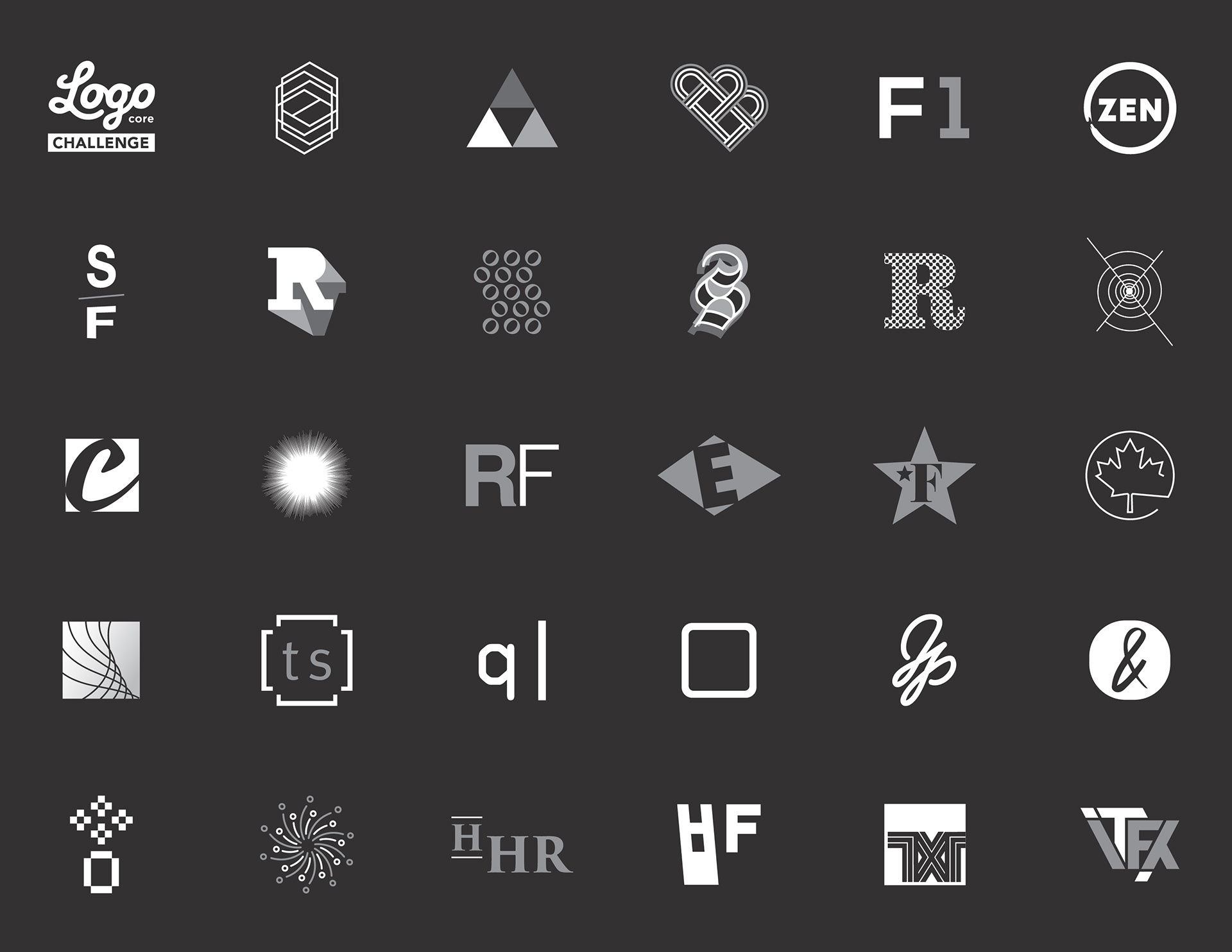 LogoCore Daily Logo Challenge is a project to design an identity each day for 30 days in order for a designer to exercise/stretch their creative minds to be able to create stronger logos more efficiently. Updated 2021.